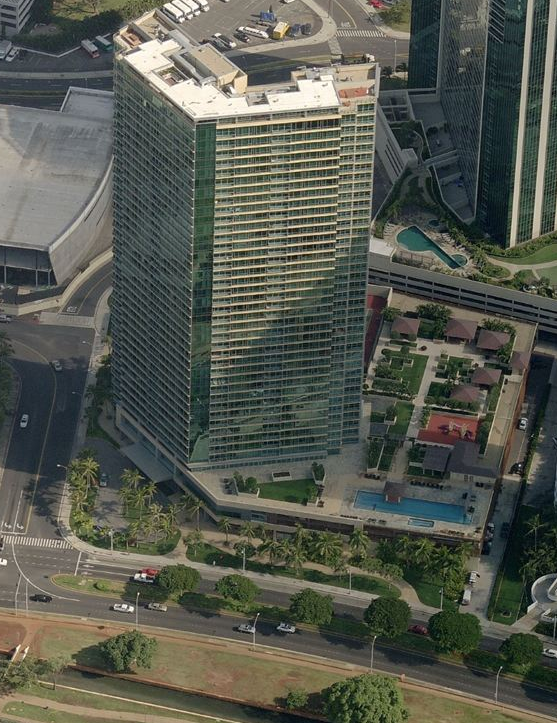 The 40-story tower, built in 2006 as a joint development venture between the MacNaughton Group, Kobayashi Group, and A&B Properties Inc,, sits between two highly desirable shopping destinations (Ala Moana Shopping Center to the east and Ward Center to the west), and benefits from excellent ocean views over Ala Moana Beach Park.